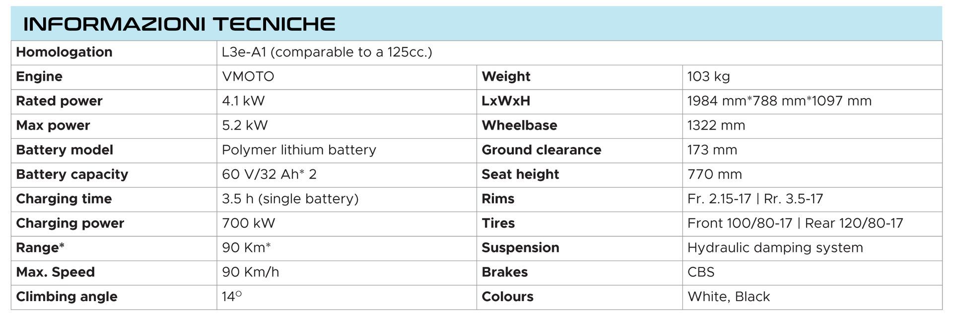 * Autonomia calcolata con WMTC Stage 3